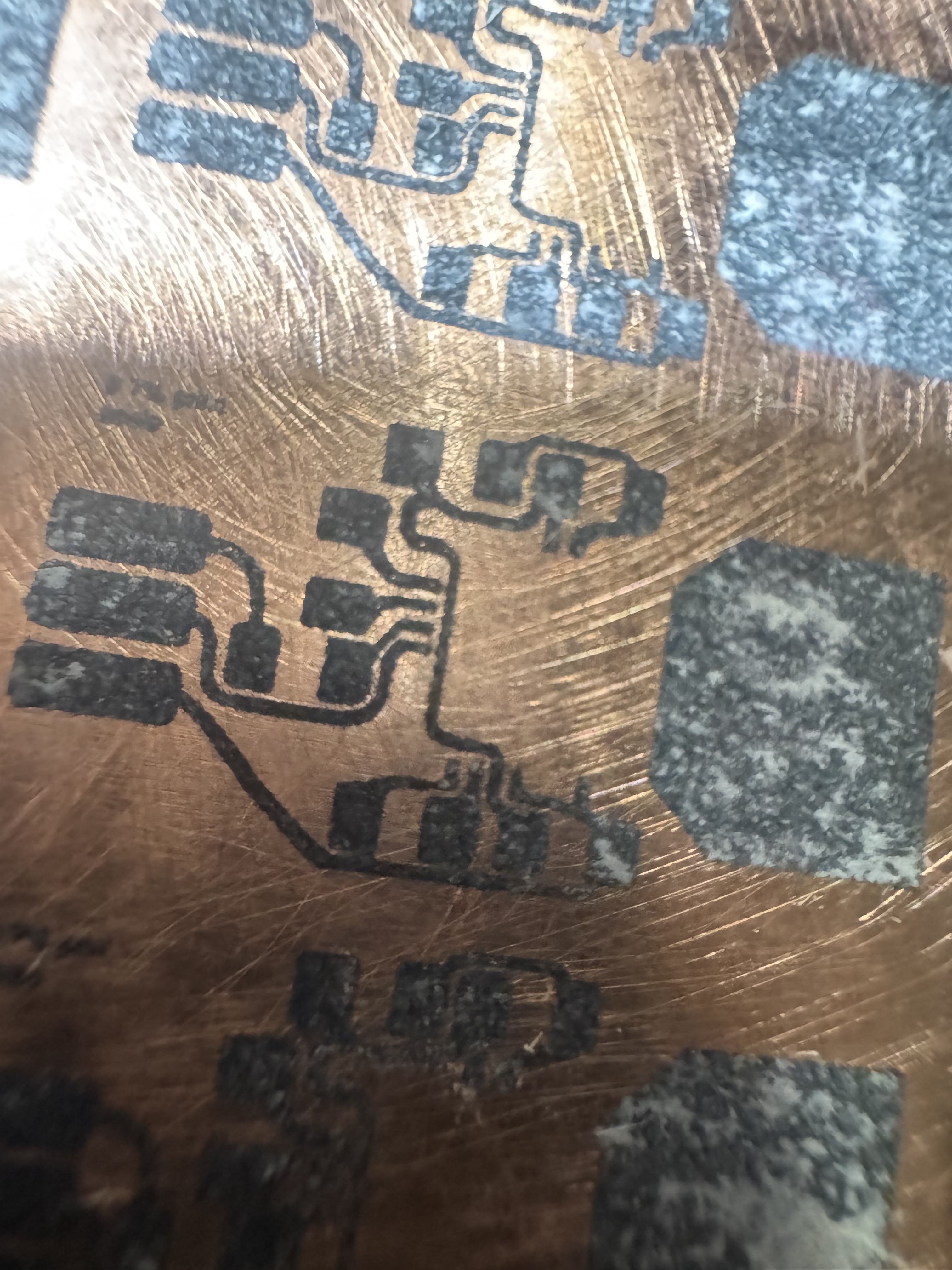 The first board I left etching for a couple hours unattended which was a mistake. It was unusable. A ton of the copper under the toner was missing which is called undercutting. I left it etching for too long which causes this. The second board came out pretty good. But I used the exhuasted etchant from the first board which was already too diluted and so the results were meh but good enough to use IMO.