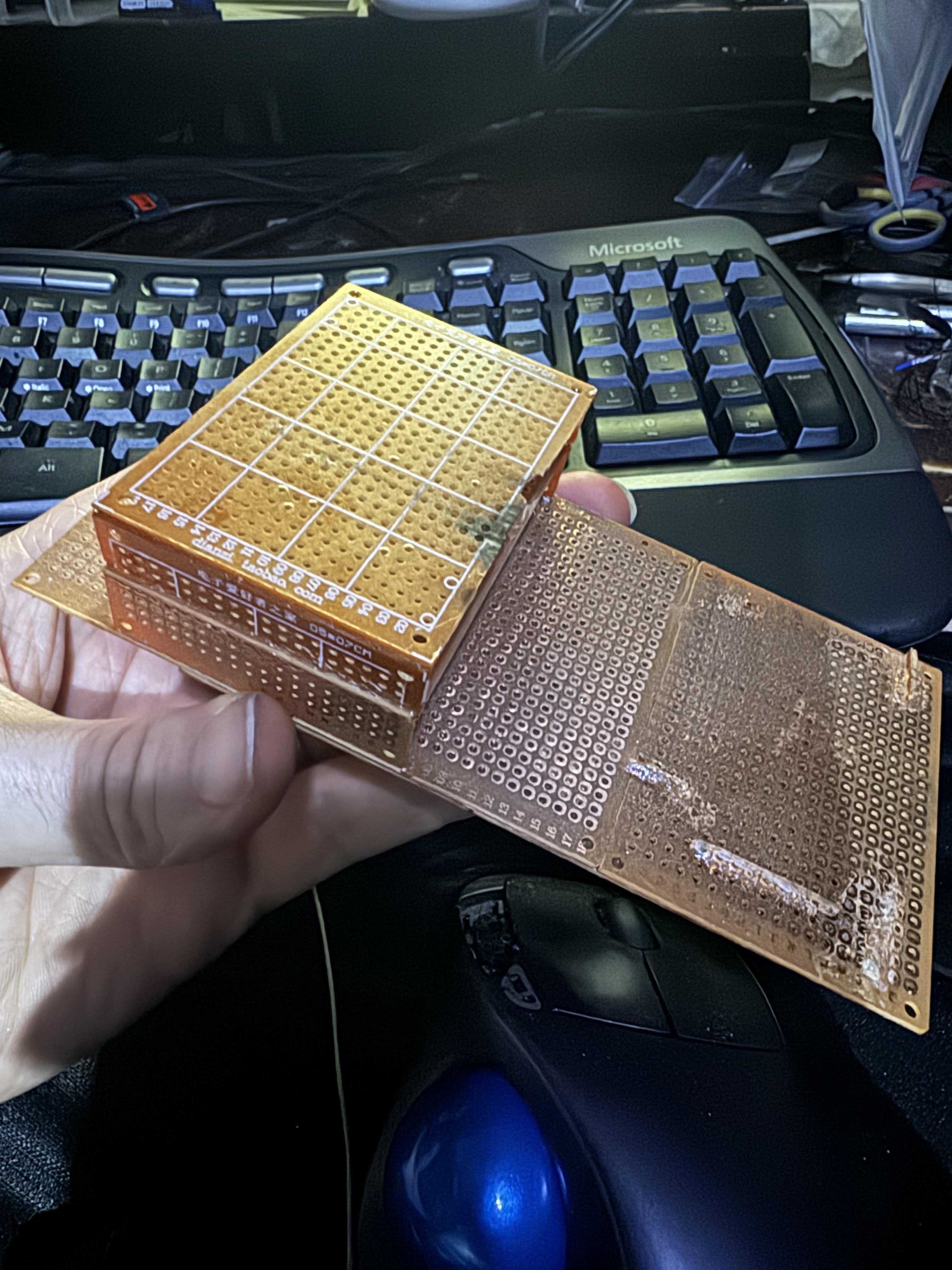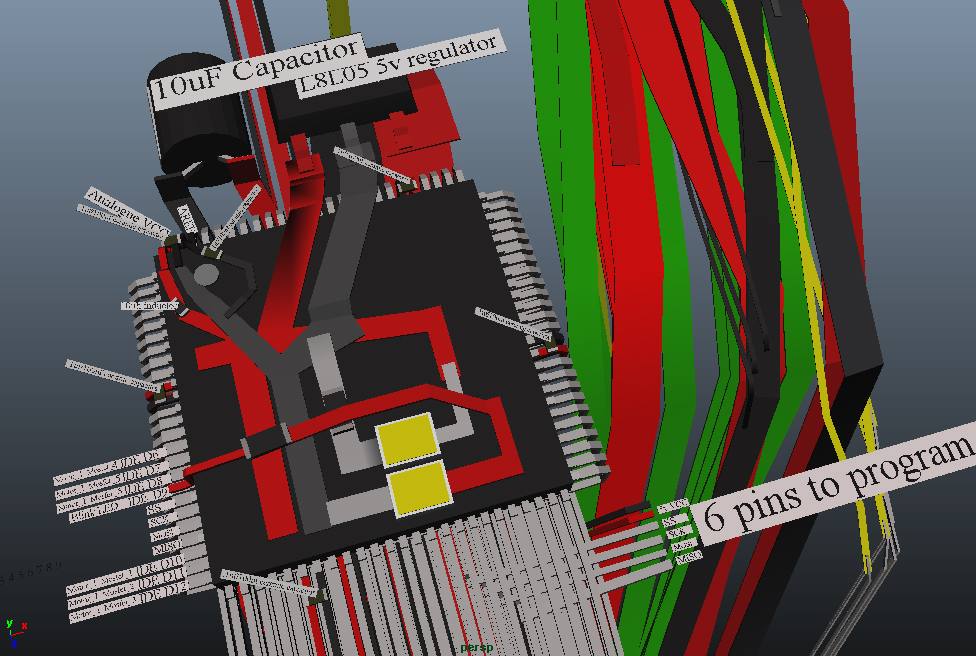 Above is my CAD model of a Arduino barebones custom microcontroller in 3D and also of my progress so far on prototyping it. Note that I soldered flat flex cable with matching pitch directly to the pins of the Arduino mega microcontroller chip. This will enable me to get the smallest possible microcontroller form factor possible IMO. Miniaturization is everything for me to fit everything I need to fit in the cramped spaces in my complex robot design. It is actually pretty easy to solder flat flex ribbon cable directly to the microcontroller IC chip once you get the hang of it (but you must wear a visor magnifier to zoom in on it visually as this is tiny tiny detailed work). To do it, you first lay down the ribbon cable and masking tape it down securely, then lay the chip on top and masking tape it down securely onto protoboard so everything is pinned and your hands are free. Then apply low temp solder paste to each pin one at a time with the tip of a exacto knife blade. Just enough paste per pin for that solder joint, not any excess. Then solder one pin at a time by putting a clean soldering iron tip into the little blob of low temp solder paste and dragging the tip away from the microcontroller carefully. You can't hold it on there long, have to just press it in and then slowly drag away and it happens almost instantly. Too much holding it in place creates too much heat which then melts the ribbon cable and the molten cable flows into the solder joint and can ruin the joint by introducing molten plastic into the molten metal. So you have to get in and get out fairly quickly. You also cannot do drag soldering tradition method on all pins as that creates too much heat and melts the ribbon cable. That works on fiberglass boards that don't melt, but a ribbon cable will melt if too much heat gets involved and ruins everything. You also can't use hot air which would melt the ribbon cable before the solder melts - ruining it. So you have to just do one solder job of one pin at a time. I'll do a video on the process and you can see that with the right temp soldering iron (I think I used 500F) and right speed of execution and a bit of practice, you can make the solder joints one at a time without melting the cable at all. The cable you use has to be the same pitch as the thread pitch of the pins so the conduit traces perfectly line up with the pins of the microcontroller. The ribbon cable comes pre-stripped on the ends so you don't have to strip off the insulation on that end. You just lay it flat and tape it down and put the IC onto it and it lines up perfectly if the cable has the same pitch as the IC threads. But if you mess up and want to cut the ribbon cable and strip the ends and try again (which I had to do before I perfected my techniques and got the hang of this) then you can do so. Just cut it with scissors and then use a nail file to sand the insulation off until some metal starts showing through in some spots, Once you see a bit of metal start to show through, you know it is so thin that you can just scrape off the rest of the insulation with an exacto knife so then you just scratch off the rest with the exacto knife. This too takes some practice and the right touch. When I go to connect the other ends of the ribbon cable to various components and sensors and whatnot, I'll have to make custom lengths for each individual cable strand so for this I will have to separate the strands by cutting them lengthwise with scissors to split them away from the others, isolating each one and then will have to strip off the insulation of each one so it can be soldered to things. The same method as described above will be used for this. Note that for cutting them lengthwise, that is a very precision cut you need. I use titanium straight embroidery scissors for this and of course, as with all the other SMD stuff, I use 8x or 10x or 20x magnification with my visor. This magnification is a absolute must to have any shot at success with any of this imo. Miniaturization is hard to get used to at first, but once you get used to magnification and the eye hand coordination challenges this presents at first, your skill with your hands and precision goes through the roof as the magnification makes you so precise with everything. It's really fun and amazing to see what your hands can achieve with enough magnification and practice! Drop a Comment: Comments: ---------------------------------------------------------------------------- Blog Post #16, submitted 6/26/24