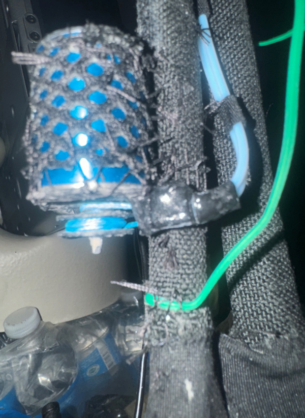 These are my brushless dc motors I selected for the finger actuation. It is size 2430 bldc. They are 200w motors so significantly powerful for a finger IMO. In the topmost image, I show my CAD design for a tubing mount that holds the tubing that guides the muscle cable. This tubing needs to line up accurately to ensure proper winding action. I'm able to use fabric tape to secure the tubing to the tubing guide 3d print that I attach to the motor by way of sewing with upholstery thread and a suturing needle. The holder has to be ABS 3d print so it can handle the heat given off by the motor without deforming. PLA's glass temperature at which it begins to deform is too low to be touching the motors which may get a bit hot. But ABS does not deform at the temperatures expected for the motor even at its hottest so it is safe to put against the motor. Anyways, after taping the tubing to the tubing guide arm, I apply super glue to the fabric tape which solidifies it and makes it act like a cast holding on the tubes very solidly. Note that I chose to use football jersey mesh coated on the inside with no slip rug coating paint as the means by which I create a fabric sleave for the motor. The motor will not be able to turn in this tight sleeve and once it has this sleeve, I am able to sew the motor sleeve onto the bone sleeve by way of suturing with upholstery thread. I prefer sewing on parts as opposed to bolting them on since bolts into the PVC bones would compromise the structural integrity of the bone. By sewing you don't damage the bone at all but instead sew into the fabric that coats the bone which doesn't affect the structural integrity. The little discs that make the output shaft of the motor look like a sewing bobbin were also 3d printed in ABS and glued on with super glue onto the shaft. I use a needle screwed into a exacto knife handle as a precision applicator for the super glue, dipping just the tip into the glue and carefully applying the glue where I want it. This prevents drippage which can be a bit of a disaster when dealing with tiny parts that are moving parts like this. In this picture I was using 130lb test blue PE braided fishing line, but I realized this is oversized for the fingers and the larger diameter guidance tubing also would be oversized and take up too much space. So I switched to 20lb test PE braided fishing line instead a couple days ago. After the first handful of pulleys in the archimedes pulley downgearing system, only then as the torque increases will I swap to 70lb test fishing line which will complete the Archimedes pulley system before being routed to the finger joint to actuate the finger. Note: the TPFE teflon tubing idea came from studying the bike brakes mechanism and how tubing enables the bike brake wires to make arching turns while leaving slack in the lines due to the big arching turns in the guidance tubing that allows you to turn the handlebars without the brakes deploying due to the slack the guidance tubing affords you in your bike design. The same principles are being used in the tubing for guiding the muscle cable of the robot. Note: the more pulleys you add to the archimedes pulley system the more downgeared it will be. Downgearing trades speed in exchange for gaining torque. So you end up with a slower muscle cable but pulling harder. Since these BLDC motors are designed for high speed and low-ish torque, trading off that speed for more torque by way of downgearing is essential for useful muscle actuation. Hobby servomotors generally use brushed dc motors (cheap and crappy) and downgear by way of a gearbox (loud and have resistance) and the downgear ratio they achieve is 180:1. They end up a pretty nice speed but a tad on the slow side IMO. So I'm shooting for 32:1 or 64:1 which will bump my speed up compared to the hobby servo but still give me a great torque output. And remember, BLDC motors are WAY more powerful than a equivalently sized brushed DC motor. Note: the holes in the football jersey mesh allow for the motor to "breathe" releasing the heat it produces into the surrounding air. This is important because you don't want to trap the heat in and smother the motor and cause it to overheat. The football jersey mesh is also very strong and anti-rip because it's designed for football after all. So it really seems like a perfect fit for this. Note: I plan to actually use silicone based thermal glue to adhere braided copper wick to the motor and run this over to copper coolant pipe which will run throughout the robot carrying coolant. This will allow for thermal conduction of the motor's heat into the coolant pipe to be carried away from the motor and over to the evaporative cooling system. Copper is a excellent thermal conductor. Also, some percentage of heat as it travels from the motor through the copper solder wick braid and over to the coolant piping will escape into the surrounding air which will be regularly replaced with fresh cool air by the artificial lungs which will distribute fresh air throughout the robot in tubes and simultaneously, hot air will be exhausted through separately routed exhaust pipes as the fresh air displaces it. So then the solder wick braid increases the surface area coming from the motor which is more opportunity for venting off heat. These act like fins on a radiator for a car which evaporate heat. Drop a Comment: Comments: ---------------------------------------------------------------------------- Blog Post #12, submitted 6/15/24 The archimedes pulley system CAD image in my last post will give 64:1 downgearing. Compare this to 180:1 standard downgear ratio in a hobby mg996r servo motor for example. Will be a bit faster than that then but still plenty of torque. Another HUGE benefit of pulleys over gears is gears generally are mounted to top of motor which really makes a large volumetric area taken up by the motor and downgearing which creates space concerns for fitment inside tight spaces in humanoid form