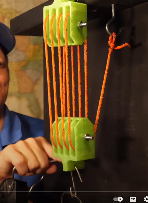 As you'll note above, my early design assumed the string can just slide around a sheath which is true, however, it does not take into account the slicing effect this would have. People use string to cut firewood! It can even slice through metal. So in the second drawing I moved away from that idea and went with a more traditional bearing based pulley design - pulleys more like rock climbers use. This way the string does little to no sliding on the pulley but instead the pulley's bearing is what does the slippage and the outer race of the pulley just gently guides the string along. So all the rubbing/slippage is happening inside the interface between the inner and outer race of the bearings. For some bearings I'll be using ball bearings I bought on aliexpress and amazon. For other bearings that need to be more robust, I'll be using custom fabricated plain bearings I will be making using stainless steel tubing I bought on amazon. Plain bearings can handle more load than ball bearings which makes them ideal for the higher torque last few pulleys of the archimedes pulley system. Drop a Comment: Comments: Older Posts |